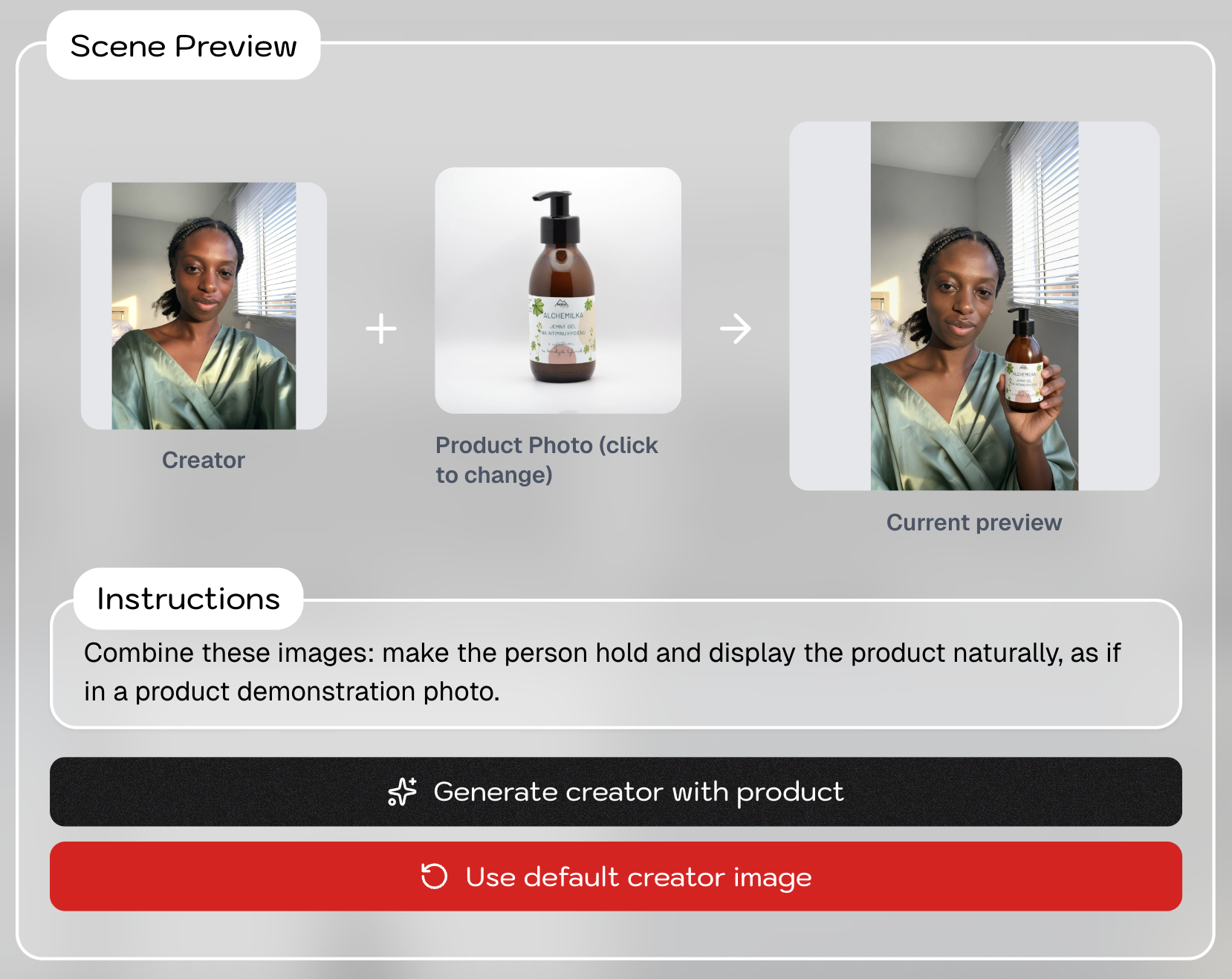 Add product shots, make actors interact with your products, change settings, and generate fitting b-rolls. All with few clicks.